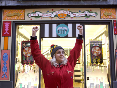 Her personally designed and fabricated "Together" sign has a quirky and vivid style which really compliments the unique shop.